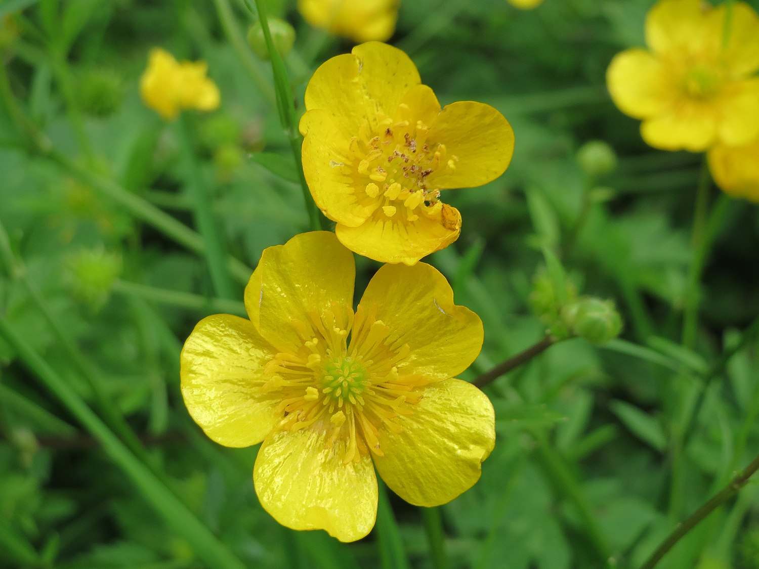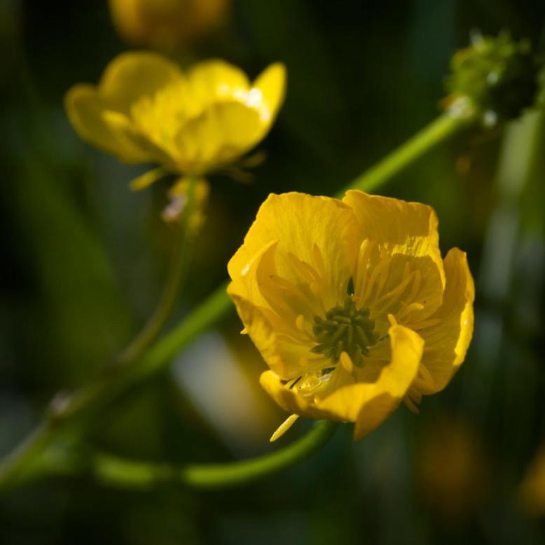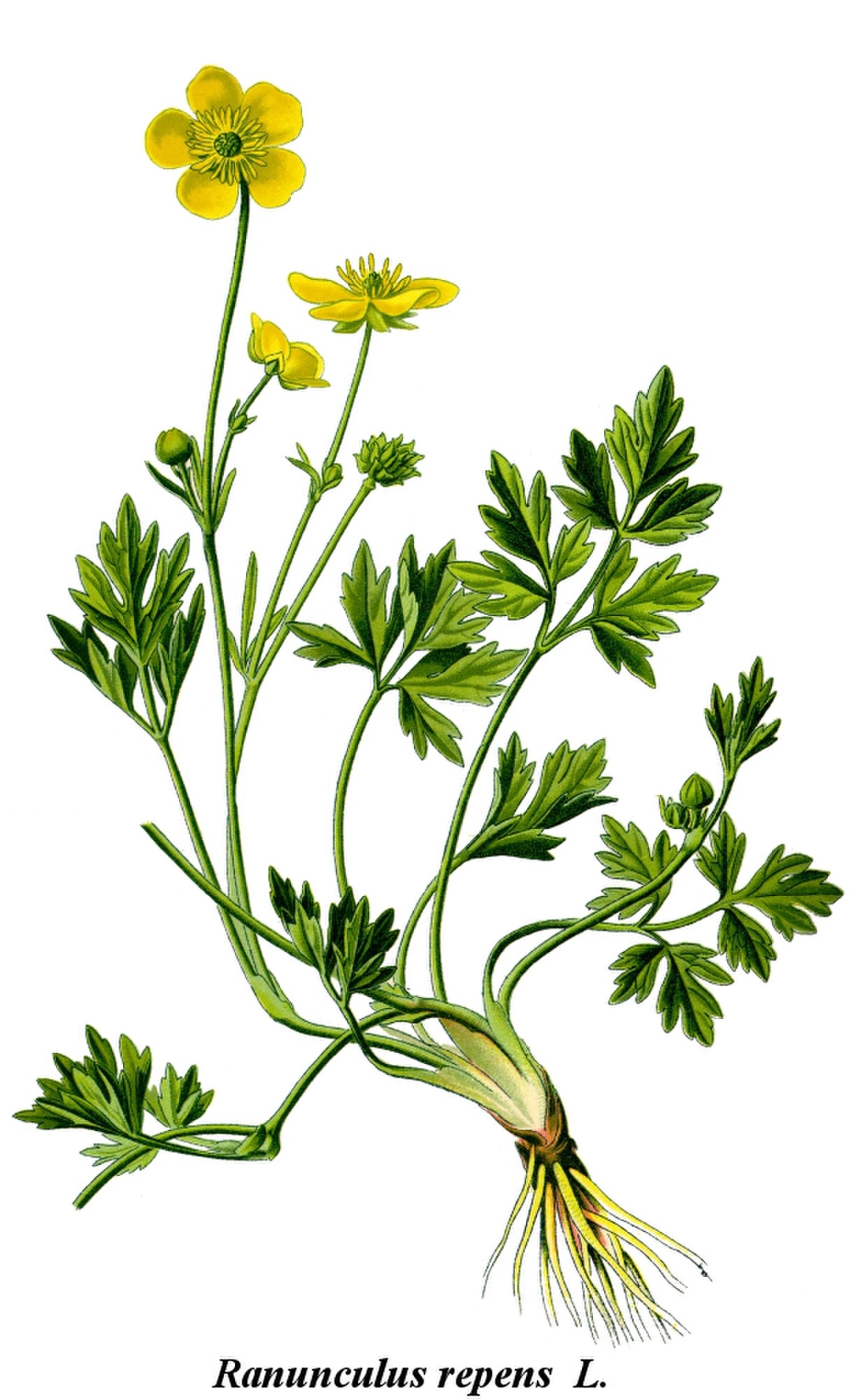 La Renoncule rampante, également connue sous le nom scientifique de Ranunculus repens, est une plante vivace appartenant à la famille des Renonculacées. Elle se caractérise par ses tiges rampantes et ses feuilles divisées en lobes profonds. Cette espèce est présente dans les prairies humides, les marais et les bords de cours d'eau en Europe et en Asie. La Renoncule rampante produit des fleurs solitaires à cinq pétales, qui attirent les insectes butineurs. Cette plante est parfois considérée comme une mauvaise herbe dans les cultures, en raison de sa capacité à se propager rapidement.